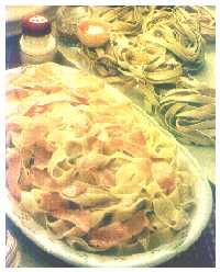 w drobne pasemka szynkę. Można śmiało zastosować tu