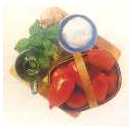 Składniki na 4 osoby - 600 gr. świeżych pomidorów - 3-4 łyżki oliwy z oliwek - kilka listków bazylii - 1 ząbek czosnku - sól |